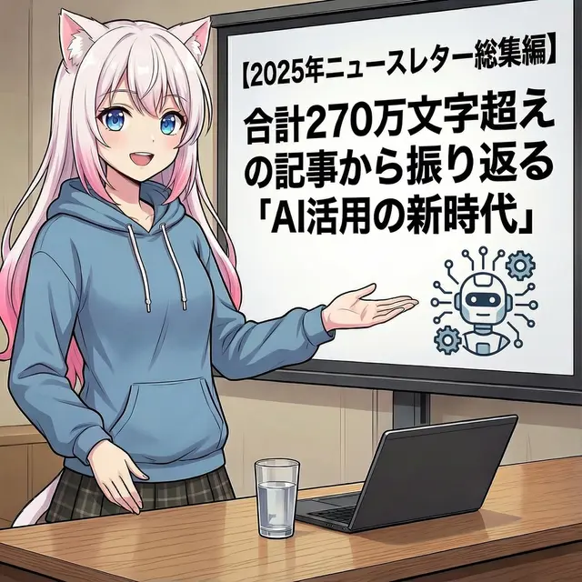 2024年1月22日にニュースレターを始めて、2025年1月には念願の購読者1,000名を突破、そして2025年12月には購読者が5,000名を突破しました。この1年間で執筆した52本の記事、総文字数約270万文字超え。その中から、特に注目を集めたトピックと個人的なチョイスを総集編としてお届けします。「AI活用の新時代」を一緒に振り返りましょう