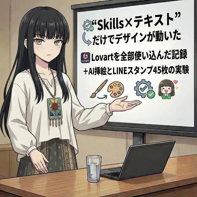 「挿絵って1枚ずつ作るものだと思ってた」…Lovartは違います。Skillsで14シーン分の挿絵を一気に生成して、選ぶだけ。その仕組みとSkillsを丸ごと公開します。LINEスタンプ45枚・フルガイドもまとめてこの1記事に入れました